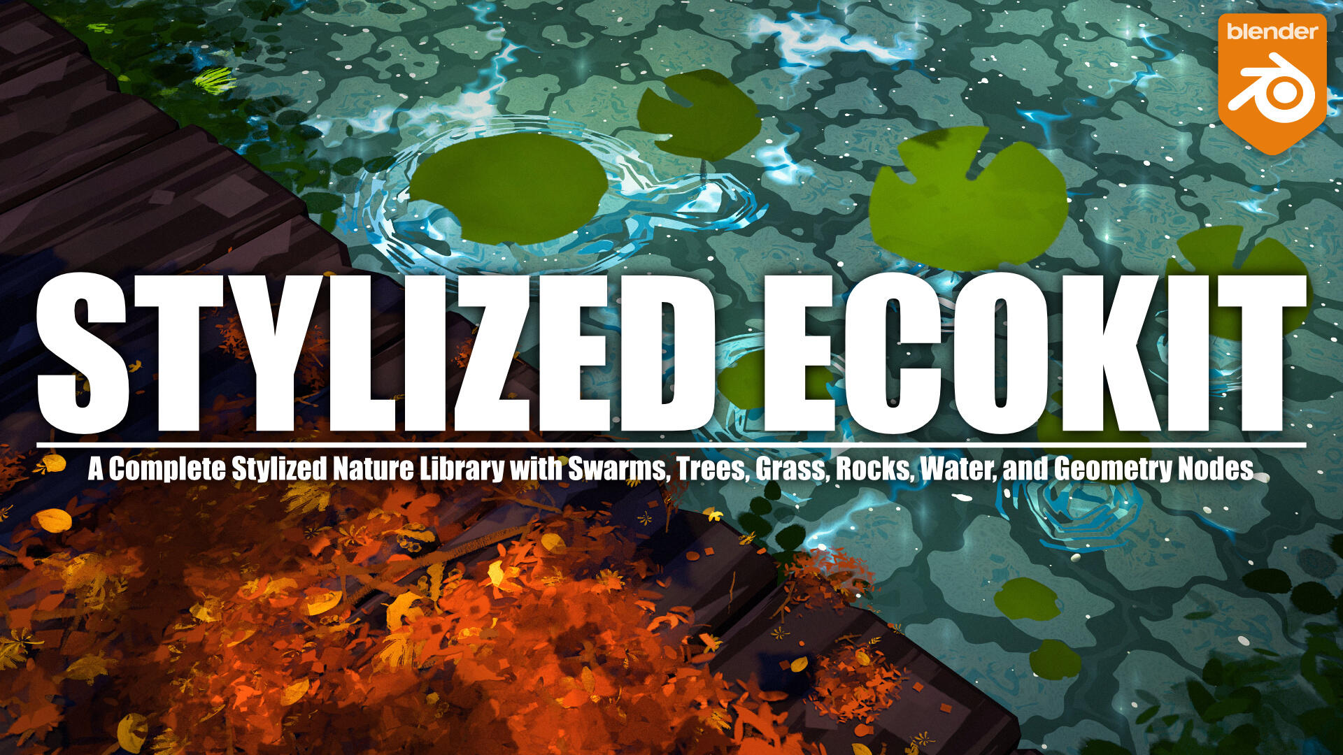 including swarms, flora, rocks, and water, across 57 subcategories.It offers models, shaders, and Geometry Nodes, allowing you to create endless variations tailored to any stylized scene.